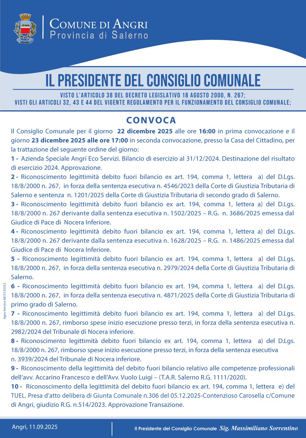 Convocazione-Consiglio-Comunale-22-dicembre-2025 ALLE ORE 16:00 IN PRIMA CONVOCAZIONE E IL GIORNO 23 /12/2025/ ALLE ORE 17:00 IN SECONDA CONVOCAZIONE (STREAMING CLICCA QUI)